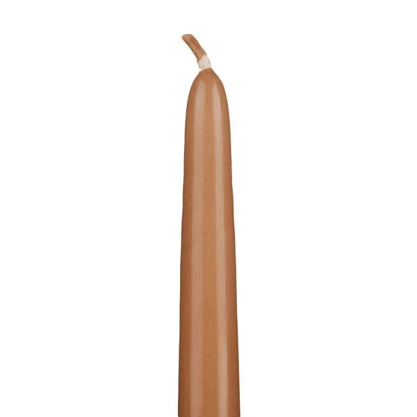 These 9.5 Inch Warm Tan Tapers are created using the dipping method of candle making, each 9.5 Inch Taper has a white core.